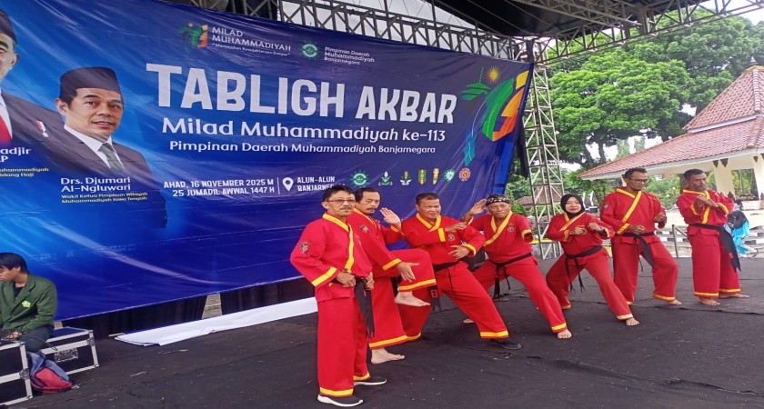 Kehadiran para pendekar dari Tapak Suci Putera Muhammadiyah Pimda 046 Banjarnegara menjadi daya tarik utama dalam memandu jalannya Senam Sang Surya. Semangat dan keahlian mereka berhasil membakar antusiasme ribuan peserta.